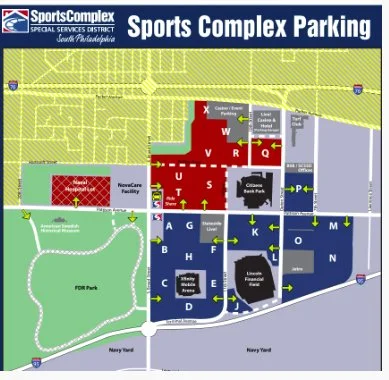 All guests should enter the Sports Complex via Pattison Avenue and follow signage for the Sports Complex Access Road . This access road runs behind the stadiums and directs vehicles into the designated parking lots surrounding Xfinity Mobile Arena.